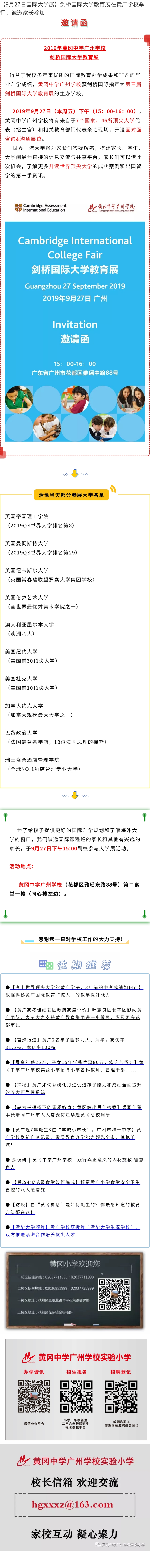 > 【9月27日国际大学展】剑桥国际大学教育展在黄广学校举行,诚邀家长参加