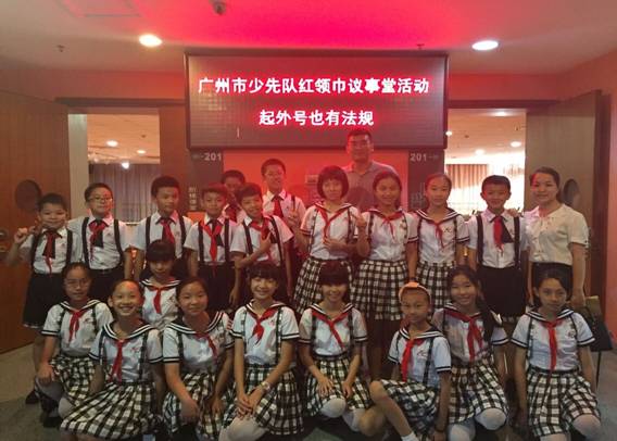 6月19日,黄广小学五六年级20名少先队员组成了花都区少先队理事代表队,参加了由团市委、市少工委组织的“培育和践行社会主义核心价值观——红领巾议事堂‘庆六一’系列活动”。