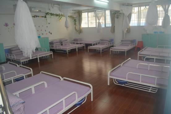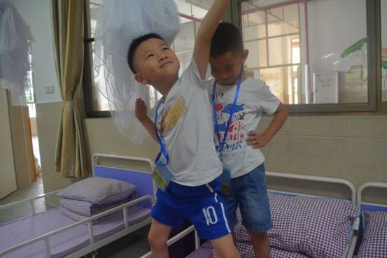 宿舍内生活老师帮孩子标记、整理衣物,并教孩子识记方法,亲切地问候,细心地叮嘱,如妈妈般的体贴关怀。