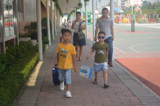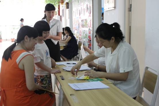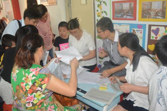 家长拿着报到转单,按照流程指引为孩子做好一切开学准备。