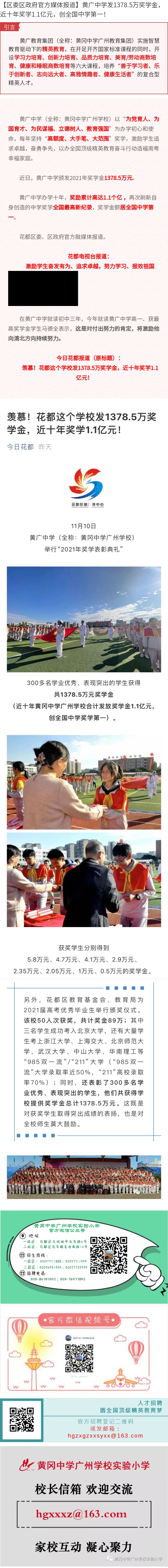 > 【区委区政府官方媒体报道】黄广中学发1378.5万奖学金,近十年奖学1.1亿元,创全国中学第一!